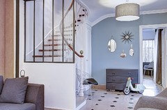 Commentaires (15)Bonjour, Vous avez raison de soigner votre entrée, cela reste une pièce majeure, tant pour vous que pour vos invités. La décoration doit vous raconter une histoire, votre histoire combiné avec celle du lieu. Tout ne doit pas tourner qu'autour de votre sol, les menuiserie intérieures sont tout aussi sublimes et elles méritent une attention particulière. Le tout est de conserver le cachet de la maison en le magnifiant. Il y a toujours une appréhension pour choisir une couleur mais il faut aussi la tester pour voir comment elle réagi avec la lumière naturelle en fonction de l'exposition de la pièce ; Il est très probable qu'elle soit exposée au nord. Ce que je vous préconise c'est de choisir une des teintes du carrelage soit le vert soit le rouge, le rouge foncé s'harmonise bien avec le style de la maison ainsi que votre belle région ; Testez la couleur sur un bristol format A4 et regardez comme elle évolue au fil de la journée. - Pour le rouge, je vous préconise : Chatelet des Peintures Malouinières http://www.malouinieres.com/peinture-interieure/ Néanmoins seule la partie haute du mur devrait être peinte et la partie basse dans une couleur neutre, blanc cassé, lin clair par exemple sauf blanc cette teinte adoucira la couleur que vous aurez choisie. - Pour la teinte neutre, je vous préconise : Calvaire ou Abbaye des Peintures Malouinières Le vert fait son grand retour, à vous de voir celui qui rendrait le mieux. - Pour le vert, je vous préconise : Hotel Particulier ou Orangerie des Peintures Malouinières Dans les 2 cas il serait intéressant de décaper les portes, les encadrements, la cimaise et l'escalier, le bois (chêne) retrouvera sa teinte naturelle ce qui accentuera le côté chaleureux que vous voulez apporter et cela sublimera les menuiseries sans oublier d'appliquer un vernis mat naturel pour les protéger. En ce qui concerne l'escalier il serait préférable de peindre les contre marches, le poteau et les balustres de la même couleur neutre que la partie basse ce qui l'allégera visuellement (il est à ce jour très marqué et assombri l'ensemble de la pièce) tout en le magnifiant, il est préférable appliquer un vernis mat pour la protection des peintures. En ce qui concerne les mobiliers et l'éclairage, pourquoi décaper vos mobiliers si vous souhaitez les conserver (néanmoins ils restent imposant et masque le sol, ce qui est dommage). Dans le cas contraire, remplacez votre meuble par une belle console qui serait placée devant la double porte et surélevé par votre grand miroir (actuellement au sol) et pourquoi pas patiner le cadre avec une cire couleur bronze. Pour apporter une touche légèrement décalée et contemporaine, une jolie chaise (osez les matériaux) une très belle lampe de table assez haute (60 à 70 cm) et un lustre du même diamètre que l'existant ou un rectangulaire qui allongerait le couloir. Vous pouvez également conserver le vôtre qui serait un clin d'oeil au grand miroir. Je reste à votre entière disposition pour tout complément d'information qui vous serait utile. Valérie BINGLER - B INTERIOR 07 82 97 87 05... Voir plus- il y a 11 ans