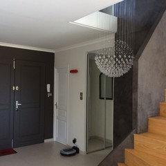 Commentaires (10)Bonsoir, bonne idée de conserver ce carrelage à motif, puisque vous l'aimez ; il sera la surprise lorsque l'on rentre dans la cabine. C'est bien les surprises. Le carrelage Tonalite a une taille standard au métro traditionnel. Les joints créent un rythme qui donne vie à ce carrelage simple mais subtil. Utiliser du joint blanc et pour une bonne tenue du blanc dans le temps utiliser un joint Epoxy. Votre idée de stylobate afin de faire ressortir la baignoire blanche a du sens. Cela peut être envisagé de mur à mur uniquement sur ce grand mur. Cet effet peut être simplifié, obtenu en utilisant le même carrelage, dans une autre teinte plus foncée. Sur le site du fabricant Tonalite il y a un visuel avec cette idée de changement de couleur, simple et très chic. Dans ce cas le changement de teinte doit se faire à +/- 1 mètre du sol, hauteur traditionnelle des stylobates. En même temps ma contribution à votre projet a ses limites car je n'ai pas vu les lieux, je n'ai pas les mesures. A vue d’œil elle fait 10/12 m2 (?) Pour faire suite au message de Silvermoni il est vrai qu'il faudra faire un peu attention avec le parquet. En même temps la douche est en face de la baignoire, vous n'aurez qu'un pas à faire pour vous rincer sous une vraie douche. Il faudra être vigilent sur la traitement du sol. Soit une vitrification forte, soit une huile bio à passer généreusement 2 fois par an. Le parquet dans une salle de bain est toujours du plus bel effet. Voir photo jointe d'une salle de bain que j'ai réalisée dans une jolie demeure historique en Allemagne. Le parquet a été retrouvé sur place sous d’horribles carrelages. Il date du XVIIIème siècle et certaines lattes font plus de 60 cm de large! Bonne suite.... Voir plusavis déco salon salle à manger