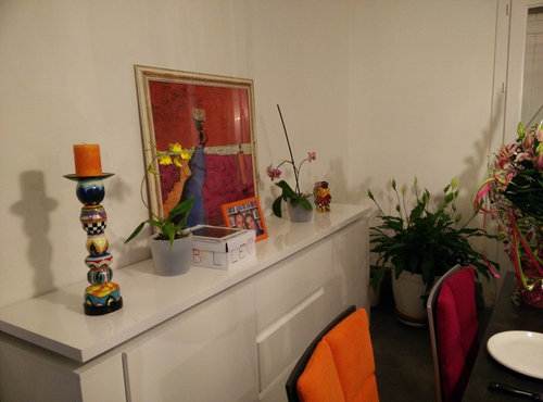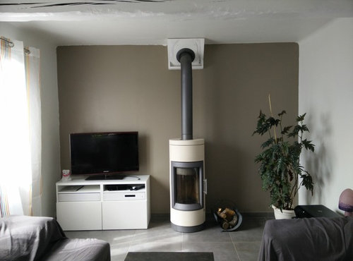 derrière le poêle a bois, j envisageais repeindre le mur en blanc et derrière le poêle mettre une bande assez large orange ou gris argent merci d avance bde votre aide. les couleurs dominantes sont framboise orange et gris