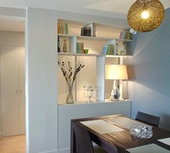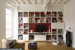 Commentaires (4)Erreur de touche. Je reprends où je me suis arrêtée, excusez-moi ! La COULEUR choisie pourra aussi être déclinée en nuances, plus ou moins foncées. SAM - Remplacer la nappe par des sets COULEUR. - Le meuble rangement blanc fait bien seul le long du mur, un autre identique de même largeur meme hauteur avec ou sans porte trouverait bien sa place à coté. - Peut-être installer l'aquarium ailleurs. SALON - Espace entre le canapé et le mur : pas très joli, le supprimer ou le dissimuler en utilisant un guéridon ou un petit meuble. - En remplacement de la petite table basse dans l'angle, mettre un meuble colonne un peu haut, etroit à rayonnage, tourné face SAM. Pour quelques bibelots , livres afin de garnir un peu le mur baies vitrées. Penser à utiliser la COULEUR. - Réfléchir si vous désirez habiller ces baies vitrées avec voilages, rideaux ou stores et dans quels coloris. Le mur derriere le canapé pourrait etre gris foncé, de même pour le mur en face. Le reste gris clair. Un tableau ou une déco lumineuse à mettre au dessus du CN, voir avec les appliques ? ENTREE Le mur avec porte fenetre pourrait être habillé avec une tapisserie à motifs dans les tons de votre COULEUR (en assez clair sur fond gris clair). Les 2 autres murs en uni gris clair. CUISINE Le mur derriere le four et celui derriere l'évier peints en COULEUR, protégés par une crédence gris foncé hauteur 25 à 30 cm. Le reste gris clair.... Voir plus- il y a 10 ans