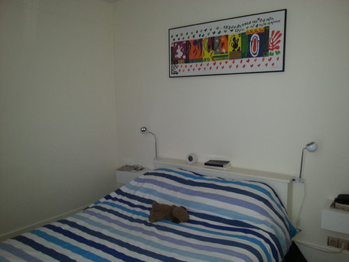 Commentaires (13)Bonjour, Je pense qu'il faut voir la problématique tête de lit en relation avec tous les autres éléments de votre chambre : agencement, luminaires, couleurs, linge de lit…Ceci afin d'avoir une chambre réellement harmonieuse dans son ensemble. Il faut donner une identité à votre chambre : actuellement vous avez un lampadaire en rotin, un lustre très classique, du linge de lit rose pâle…Il faut vraiment travailler l'ensemble et non la tête de lit indépendamment du reste. Cordialement. MADECOENLIGNE.FR... Voir plusJ ai une grande chambre le Niro j'ai mis mon lit la tête de lit représ