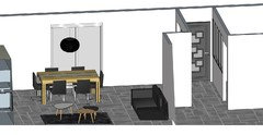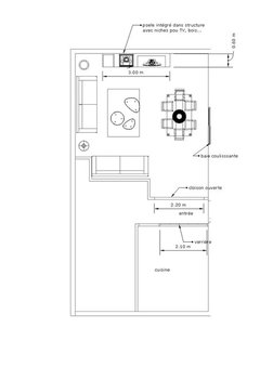 Commentaires (25)Cartouge Création, vous nous conseillez du coup de mettre la table devant la baie? et de ramener les deux chaises vers la table à manger? Dans ces cas là, on mettrai le bureau à l'entrée? comme cela la chambre 3 ne serai que la salle de sport. Ok pour l'îlot central alors. Dans le cas où on préfère vraiment une table rectangulaire extensible, que nous conseillez vous pour un peu de "rondeur"(je ne suis pas sure du terme)? Florence Merieau, à quelles dimensions pensez vous quand vous parlez d'un ilot carré?, la pièce étant en profondeur l'ilot carré (aulieu du rectangulaire) ferai plus tache non? Pour le canapé d'angle on aimerait bien, c'est notre premier choix mais comme j'expliquait à Cartouge Création, on a cherché toute la journée d'hier des vrais canapés d'angle (pas linéaire plus méridienne) de nos dimensions sans succès. Si on pouvait le disposer comme suit ce serait super!!! : L'îlot passerait à 1m30 en suivant les conseils, la table à 1m40 avec possibilité d'étendre à 2m20 (on est que 2 donc si on a pas d'invités, 1m40 suffisent :) ps : sur la photo, les tabourets du bar sont sortis, pas rangés sous la cape de l'îlot tout comme les chaises de la table à manger. A l'entrée, le petit rectangle de l'entrée fait 3m44x3m18 (largeur) comprendrait la séparation proposée par Cartouge Création et le bureau juste derrière. Le buffet reste toujours là. Je prépare une autre image et vous propose.... Voir plusBesoin d'aide aménagement Salon/cuisine/salle à manger