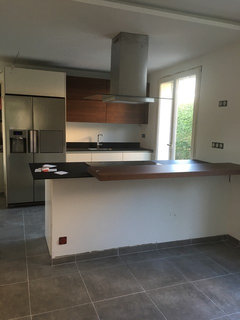 Commentaires (17)Bonjour, Votre cuisine est sympas et la simulation aussi. Je suis artisan menuisier et je pose 1 cuisine par semaine pour une grande enseigne. Mon conseil, évite l'inox sur les façades ou les plans de travail, comme cité plus haut très salissant et surtout ça se raille très vite. Donc poignées et plainthes c'est suffisant. Pour le reste tout dépend de votre budget je déconseille de repeindre le plan de travaille il subit le plus de chocs donc pas top, les granites ou corian sont le top à mon goût mais c'est pas donné sinon l il a de très beaux en supermarché de bricolage. Pour les façades si vous savez peindre oui ça se fait même plutôt bien aller chez un fournisseur pro de peinture mettez un primer "bin " ou "1.2.3" ensuite moi je peins avec la marque guittet, pour en avoir essayé plusieurs celle ci est très bien facile à appliquer à l'eau donc sans odeur et surtout sèche très vite. Si vous avez des animaux ou des enfants en bas âges vous pouvez rajouter un vernis de protection. Sinon allez chez un cuisiniste et rachetez des façades toutes prêtes. Pour les crédences le top reste le carrelage.... Voir plusHELP: J'ai besoin de conseils pour mon futur salon cuisine