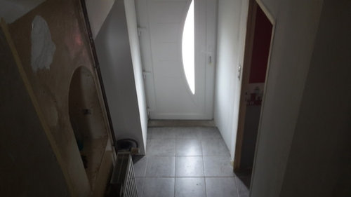 Commentaires (14)Pour les portes, vous allez avoir la porte d'entrée blanche, j'aurais tendance à fondre la couleur des portes et du mur, pour avoir un effet de moins de portes, notamment les portes pleines. On peut aussi créer un effet trompe l'œil sur celle du fond face à l'entrée pour donner un aspect perspective. Il existe de très beaux stickers type autocollant de porte pour ce faire. Pour la porte double qui va au salon /séjour, elle fait veillotte (surtout les poignées), mais tout dépend de ce que vous trouvez en ouvrant cette porte... Une couleur vive un peu flashy et un changement de poignées suffiront elles ? Je verrais bien une double porte vitrée coulissante, mais y a t'il la place à l'intérieur de la pièce ? Je ne sais pas si vos petits carreaux sont indépendants ou si les traverses sont collés après, sinon j'aurais supprimé les deux lignes verticales et élargi les lignes horizontales avec une baguette plate. J'aurais repeint la porte en noire et changé la poignée. L'encadrement à peindre dans la couleur du mur la fera aussi apparaître moins imposante .... Voir plusBesoin d'aide pour cage d'escalier / entrée. Merci