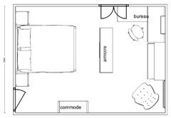 Commentaires (5)Je comprends votre orientation vers le style anglais que j'apprécie également. Cependant je ne vous le conseille pas dans cette pièce qui est assez petite pour le mobilier qu'il suggère...Avez vous pensé à installer un lit mezzanine, (sur le mur où se situe le radiateur), attention à la hauteur du plafond...Vous pouvez y installer des fauteuils en dessous et sur le côté également faire un petit dressing, le bureau peut être sur le côté de la fenêtre, utiliser les autres murs pour placer des étagères jusqu'au plafond...Le vert émeraude que vous souhaitez utilisé se marie bien avec du mobilier épuré également...vous pouvez mettre des rideaux en velours pour ce côté cosy que vous recherchez.... Voir plusBesoin d'aide pour aménagement / déco chambre adulte