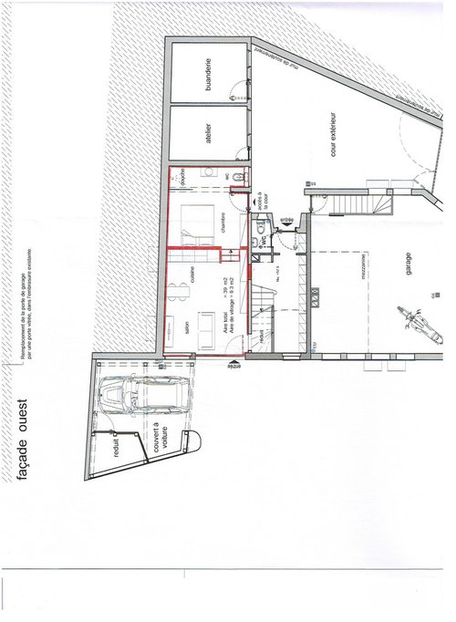 Création d'un appartement a partir de l'espace en rose. Possibilité de studio, voir un appartement d'une pièce séparée.