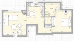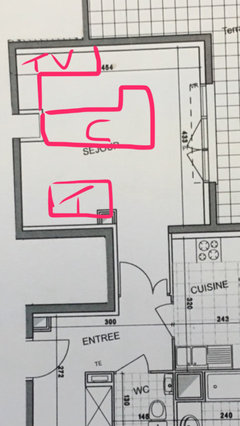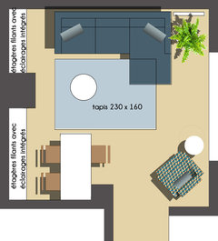 Commentaires (6)Bonjour @Bastien Fgc, Je vois qu'@I F Rénovation a travaillé tard ;-) !et vous a dessiné le même plan que j'ai ébauché! De mon point de vue, les seules raisons d'enfermer le cellier (ce qui mange de la place) c'est de vouloir cacher le frigo ou bien y intégrer laçage linge sèche linge en colonne. Le fait de déposer ses murs aère totalement la pièce et vous donne gain de place. Vous pouvez installer des rangements sous l'ilot et faire des rangements toute hauteur ( peut-être semis ouverts avec des coulissants style claustra) sur les parties perpendiculaires qui vont du chauffe eau jusqu'au qu'au panneau EDF. J'étais partie sur cet agencement sans savoir la hauteur sous la fenêtre mais elle n'a aujourd'hui plus d'importance puisque vous bénéficiez ainsi de beaucoup de rangements et le passage libre à la circulation sous la fenêtre. Si vous décidez de laisser le cellier enfermé, je vous conseille une porte coulissante plutôt que celle ci qui mange de la place. Pour le Salon, j'aurai tendance à tourner le canapé face à l'ilot, ce qui,à mon sens,enferme moins l'espace.Cela vous fait profiter de la vue sur le balcon , bloque moins la circulation et garde les convives du séjour + en lien avec l'ilot de la cuisine. C'est un peu moins pratique pour regarder la TV par contre mais vous pouvez mettre un ou deux sièges plus légers et plus mobiles à l'endroit du canapé ( d'ailleurs je mettrai des sièges pivotant qui puissent se tourner soit vers la TV soit vers l'ilot quand vous recevez. Enfin,je poserai la TV au mur sur un ( discret) bras pivotant ( ce qui vous permettra de la regarder sans souci de votre canapé) et l'inclurai dans un ensemble (léger) qui habillerai tout le mur . Une jolie table basse posée sur un grand tapis contribuera à faire un très bel espace convivial. L'avantage de cette conception est qu'elle présente d'excellentes solutions pour inclure beaucoup de rangements sans surcharger le lieu .Si le mobilier et les couleurs sont bien choisis, Il y a de quoi faire quelque chose de très sympathique! Bonne continuation... Voir plusConseils pour aménagement salle à manger/ salon