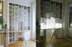 Commentaires (4)Je tente à nouveau... Bonjour Nathalie, Merci pour toutes vos précisions. Après avoir lu votre réponse hier soir, j'ai pris un moment pour étudier votre plan. Concernant l'esthétique pure de votre projet, votre idée de verrière monochrome et vitraux est intéressante et me fait penser au travail d'Andrée Putman. Comment sera votre escalier ? Bois, maçonné ? Métal ? Une idée pour votre garde-corps et la main courante (toujours Andrée Putman) : Concernant le côté technique maintenant. A votre question : Si c'est une balustrade, nous souhaitons la supprimer, la remplacer par un muret surmonté d'une verrière qui servirait de garde-corps et de séparation pour les deux espaces . Est-ce possible? Se pose la question de l'ouverture sur 164 cm - voir plan- (coulissant? ventaux?). Techniquement parlant je ne vois pas d'impossibilité et au regard de votre plan, je dirais que vous avez au moins 15 cm entre la trémie et la PF. Il est à mon avis possible de bâtir un petit muret en béton cellulaire (type Siporex - il existe aussi des blocs courbes) de 70mm et de poser une verrière de 35mm dessus. Et pour l'ouverture, vous pouvez choisir soit l'un soit l'autre, je pense que personnellement j'opterai pour deux vantaux, plus qu'un coulissant. Cependant, je crains (toujours au regard de votre plan et malgré la transparence du verre) que votre espace cuisine-séjour-salle à manger, vous paraisse ensuite très cloisonné par cette imposante cloison vitrée. Je ne connais pas le plan du niveau des chambres, mais je pense que l'implantation de l'escalier n'est pas la plus intéressante. Vous avez un espace de vide important qui, je soupçonne, est là à cause de l'ouverture des PF, tout du moins du côté cuisine. Il aurait été plus intéressant, je pense, qu'il soit tourné d'1/4 de tour pour faire face aux WC. La circulation entre la partie cuisine et la partie séjour aurait été plus aisée, vous auriez récupéré quelques m² et aussi la possibilité de cloisonner côté cuisine plutôt que côté séjour... Avez-vous un espace repas prévu dans votre cuisine ? Bonne journée Kristell... Voir plus- il y a 9 ans