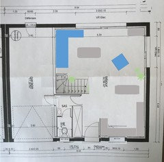 Je me creuse la tête depuis quelques semaines quant à l'aménagement de la pièce qui comportera cuisine ouverte, Salon et salle à manger. Les cloisons intérieures sont modifiables mais pas l'extérieur.