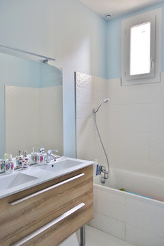 Commentaires (13)Bonjour Sophie, Deux options différentes : - On éclaircit avec du blanc partout, et on amène la décoration par des touches : cadre de miroir, serviettes de bain aux couleurs vives, appliques colorées, voire lumières de couleur (LED ?). - On fonce radicalement pour un côté classique vintage (noir brut). Évidemment, pas de papiers peints dans les petites pièces humides. Si la ventilation n'est pas suffisante, votre colle présentera à terme des défauts techniques et le papier se décollera. A voir donc. Peu-être certains ont des solutions.... Voir plusQuelle couleur pour une petite salle de bain