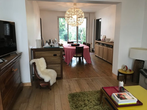 Bonjour et d’avance merci pour vos précieux conseils. Je voudrai réagencer les deux pièces pour avoir un salon plus tourné vers le jardin et plus cosy. Je n’arrive pas à mettre plus de photos.... mais on a aujourd’hui salle à manger proche cuisine et proche porte vitrée qui donnent sur jardin. On veut garder une grande table car elle sert aussi d’atelier couture ou devoir ....Salon côté rue et proche entrée. Disposition pas top des canapés ....