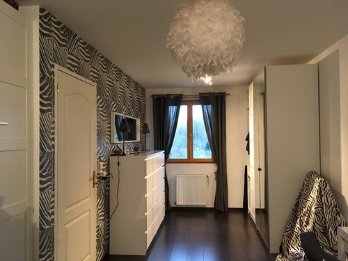une porte permet à cette grande chambre mais je n'arrive pas à trouver comment aménager cette chambre.