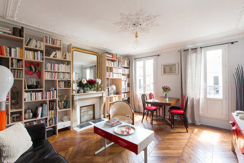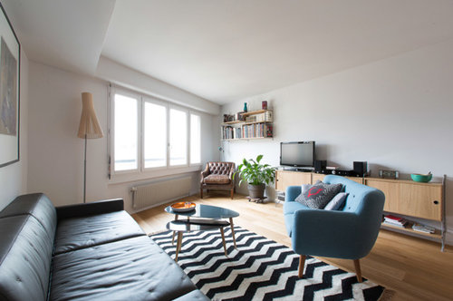 Commentaires (50)Une maison ravissante! Merci pour les idées de lustres. J'ai eu quelques soucis avec mon ordinateur, je n'ai pas pu suivre tout, merci à CM aussi pour ses idées. Mon salon n'est pas tourné vers la télévision, mais vers les portes-fenêtres et le jardin. Je ne souhaite pas mettre la télévision sur le mur du fond, je n'aime pas que les canapés tournent le dos à la fenêtre. En fait, ce qu'il faudrait faire, c'est déplacer la cheminée! L'ancien propriétaire l'a placée au niveau de l'entrée, ce qui n'est pas convivial, je l'aurais mise au fond. Mais je ne peux pas tout refaire. Je vais évidemment trouver quelque chose pour placer la télévision: le banc télé, très pratique, n'a rien de joli. Soit le repeindre, pour le fondre dans le décor, soit chercher un meuble pour le poser. Les bibliothèques ikea ne sont... que ce qu'elles sont! Plus tard je les remplacerai. Pour l'instant, j'en suis à "éclairage au-dessus de la table" (indispensable) - j'ai un lustre qui pourrait peut-être convenir. En profiter pour revoir certains éclairages. Donc j'attends l'électricien. Repeindre ce mur, et c'est difficile de trouver la bonne teinte, je vais chercher plus brun, moins gris-mauve. Améliorer la disposition des tableaux, l'organisation des étagères, et revoir le banc-télé. Toutes vos suggestions m'ont été très précieuses, maintenant il faut passer à l'exécution, mais c'est long, et je suis un peu freinée dans mon élan, en ce moment (mobilisation sur d'autres urgences familiales). Mais promis, quand c'est fait, je posterai des photos!... Voir plus- il y a 8 ans