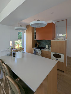 Commentaires (13)Bonjour Vanessa et les autres participants à de dilemme, Votre dilemme est quasi "textbook" concernant les difficultés de réponse de la communauté. Attention, mon but n'est pas de vous critiquer, mais de vous aider à inciter plus de réponses concrètes et faisables. Votre maison semble vous poser pas mal de questions. Vos demandes papillonnent autour des points très spécifiques sans liens entre elles. Or une maison est un gros "tout", si vous traitez espace par espace, vous aurez un résultat qui va ressembler à la plupart de maisons des années 60-70 en vente actuellement en Ile de France...Intervenant sur la restructuration / rénovation de beaucoup de ces achats, vous pouvez imaginer l'état de ces biens. Le saucissonnage des pièces, une perte d'unité, zéro optimisation, des choix "bizarres", sans parler de la couleur jaune/pêche généralisée des murs, quelque soit l'usage et le carrelage flammé au sol...(je précise, pas toujours 100% pêche/orange - souvent on trouve des carreaux blancs avec frise bateaux ou à fleurs dans une salle de bains!) Si vous souhaitez une réponse utile, rationnelle, mais esthétique et harmonieux, il y a quelques règles de base à fournir (sur un forum ou à votre accompagnateur.rice)... La création et partage d'un vrai programme détaillé en est une belle. Souvent je donne des réponses un peu trop longues... Je vais vous diriger vers 2 pages La première, un dilemme que j'a créé il y a des années dans l'espérance que les posteurs ou posteuses lisent une liste courte de contrainte, besoins, particularités qu'un professionnel de l'espace (ou même un non pro qui a des idées à partager). suivi-de-dilemmes-mon-mur-virtuel et un article que j'ai posté sur mon site/blog qui va un peu plus en détail 7 étapes pour créer un programme Perso, en plus d'un manque cruel de temps en ce moment, je n'ai pas répondu à vote dilemme car les informations et échanges ne permettent pas la compréhension d'une vraie problématique. Et sachez qu'un échange sur le forum de Houzz peut vous aider à débloquer quelques choix assez précis, mais la réfection totale de votre maison avec un déplacement d'escalier, l'ajout d'une surélévation, la modification de l'entrée / cuisine / salle de bains / wc ainsi que le dessin de votre surélévation (avec quoi...2 chambres + une salle de bains et un espace bureau?)...costaud à faire sans le soutien d'un architecte, sauf si vous faites partie du "monde de la construction". Vous avez globalement 64m² actuellement au RdC, vous pouvez ajouter environ 35m². Ca vous "garde" dans une demande de déclaration préalable et non pas une demande de PC, vous n'avez donc pas besoin de recours à un architecte DPLG pour la demande d'autorisation. Attention, attenant à votre DP sera également un permis de démolir qui inclut le retrait de la toiture(?), les ouvertures des porteurs(?) les agrandissements des fenêtres actuelles(?)...Souvent ça commence à devenir un peu complexe pour un particulier. Sachez qu'avec une surélévation, il vous faut le passage d'un ou 2 bureaux d'études, pour des sondages destructifs de structure et de fondations avec les préconisations, si besoin, pour les reprises structurelles. Sans ces études et sans assurance dommages ouvrages, il faut bien espérer que vous n'avez pas de sinistres liés à vos travaux, car votre assurance d'habitation ne les couvrira pas. Une loi a été passée pour protéger les assureurs, tout en protégeant les particuliers. Si vous avez le temps, lisez un peu mes 2 liens? Ca ne peut pas faire du mal... bon courage, Lynn... Voir plusAménagement salon/salle a manger/cuisine