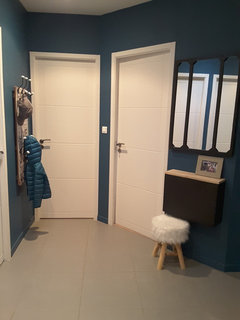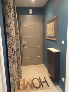 Commentaires (7)Bonjour,j'ai un doute sur l'accord orange bois clair. Je partirais donc sur du neutre quitte à jouer avec des accessoires mobiles colorés orange ou verts (genre set de tables,vaisselle,torchons pot de fleur,petit électroménager)) A bien regarder,votre deco ,il y a du bois; pourquoi ne pas assortir vos poignées en bois comme vos amusants tabourets? Cette cuisine est bien minérale,et ce n'est pas l'inox qui va la réchauffer... les niches peuvent aussi être en bois clair ou juste les étagères,et la porte bois clair vitrée?Pour info ,j'ai eu un frigo inox,on passe son temps le chiffon à la main! ou porte bois clair avec un hublot qui apporterait un peu de rondeur à tous ces rectangles. si vous voulez garder cette porte,vous pouvez y ajouter un hublot,ou coller un miroir rond,ou plusieurs en ligne verticale. bonne déco.... Voir plusBesoin d'aide pour le choix de couleur de mon sol