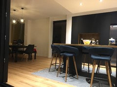 Commentaires (152)MAGNIFIQUE ET CHIC , par contre n’oubliez pas de travailler les éclairages pour que ce ne soit pas austère ! On est POUR chez CINQTROIS et vous pouvez jouer aussi sur les différentes textures et nuances des noirs. Ici sol béton ciré noir mat / tables noires brillantes / Chaises noires mates / Plafond anthracite texturé / Appliques métalliques noires... Voir pluscuisine blanche ou cuisine noire