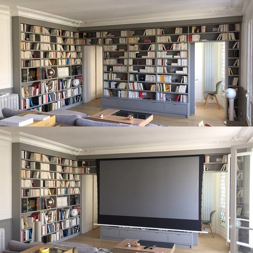 Réalisation d'une bibliothèque sur-mesure avec écran géant intégré