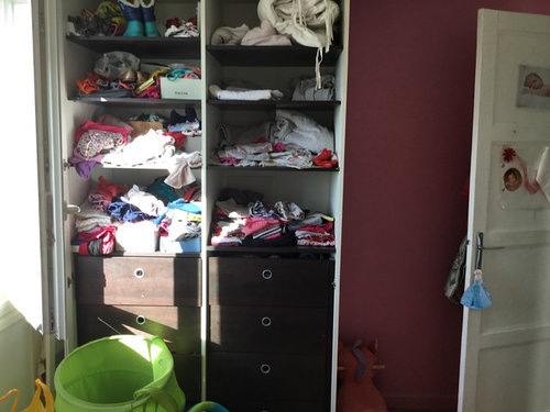 Commentaires (58)Oui, effectivement, on s'est beaucoup inspiré des idées que vous, Lynn, mais également les autres personnes, nous avez données sur ce site: un dressing dans le renfoncement, la porte coulissante (fait maison s'il vous plait !) avec système coulissant apparent, les tentures (on aimait vraiment bien le cachet que ça donnait dans votre simulation Lynn), le mur en briques (terrible idée aussi) et les couleurs claires pour augmenter l'impression de grandeur et la luminosité... Bref, une très belle expérience que ce forum. Clairement, sa chambre n'aurait pas été aussi jolie sans votre créativité à toutes et tous ! Donc un tout grand merci ! P.S.: je précise qu'on a conservé la fresque du renfoncement, on l'a simplement recouverte par le dressing et par un panneau (quelques clous tout au plus). :)... Voir plus- il y a 7 ans