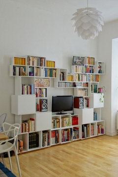 Commentaires (0)Bonjour à tous, Je souhaite avoir votre aide pour concevoir ma bibliothèque dans le salon. Elle sera créer à partir de meubles Besta chez Ikea. Mon ami menuisier créera le reste à partir de mon plan. Je cherche de l'aide pour le plan du coup ! La télévision devra se situer entre le 3eme et 4 ème caisson du bas. Les caissons font tous H=64 L=60 P=40. Saut celui du haut de la colonne qui fait une hauteur de 40cm. La bibliothèque est sur 3m de longueur et la hauteur du plafond soit 2,50m. Je vous joins les meubles de base Ikea et des photos inspirations. La bibliothèque sera blanche et l'intérieur des caissons peints en Bleu Sarah Lavoine. Des idées ?... Voir plus- il y a 7 ans