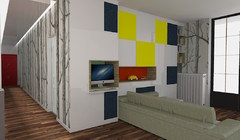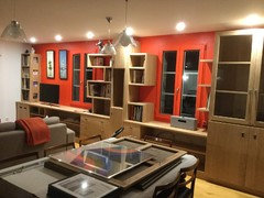 Commentaires (9)Bonjour, La bibliothèque est très bien, ainsi que le bleu et les touches orange. J'ai regardé dans votre dossier de projet. Le vitrage vers la cuisine, une bouffée d'air frais! Ça me rappelle un truc... (une de nos cuisines récentes dans un projet de logements sociaux...) Vous devrait poser plus de photos, surtout les avant et après... Merci pour les images! bonne journée, Lynn... Voir plusRéalisation d'une bibliothèque sur-mesure avec écran géant intégré