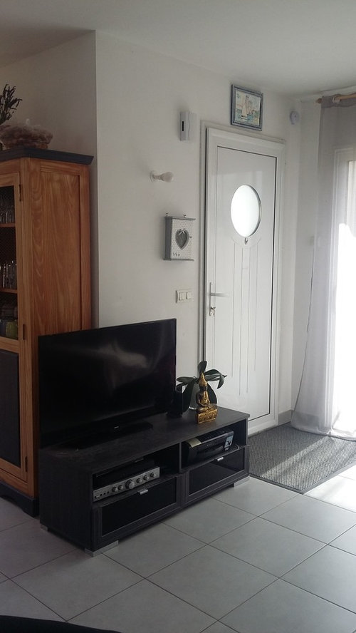 Commentaires (16)Bonjour. Je vois 2 solutions. - soit vous l'effacez en montant les cloisons jusqu'au plafond de la maison avec, pour agrandir et éclairer l'espace, d'éventuels miroirs en rappel des portes et de l'imposte. Suggestion très limitée par les moyens de dessin dont je dispose : - soit vos appliquez l'adage "mettre en valeur ce qu'on ne saurait cacher" et vous laissez aller votre imagination pour qu'il devienne l'élément clé de cette entrée (papier peint fou, couleur flamboyante sur votre fond gris, rayures démentes, etc.) Toujours avec les moyens très limités dont je dispose, à vous de faire aller votre imagination pour transposer :... Voir plusATTENTION CHALLENGE: Aménagement d'un Mur de Salon avec CONTRAINTES.