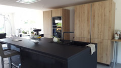 Commentaires (4)Bonjour Verena Pour ma part je pense que votre implantation actuelle est plutôt pas mal et je vous conseille de laisser comme cela. Vous avez ainsi une belle pièce à vivre avec une cuisine proche de la table de salle à manger; si vous la déplacez dans votre pièce "Arbeitsraum"vous l'éloignez de la zone de repas, avec une ouverture réduite et passage devant l'escalier, pas top. De plus vous avez une salle d'eau attenante à cette pièce, il faudrait alors au moins en déplacer l'ouverture (côté entrée); si l'intention est de cloisonner un peu la zone cuisine, rien ne vous empêche de monter une cloison partielle, éventuelle une petite verrière entre la cuisine et la salle à manger, il faudra par contre réduire, voire supprimer votre plan repas côté cuisine, auquel vous tenez peut-être? Espérant vous avoir aidée Elisabeth Clapisson... Voir plusCouleur des murs et du plafond de la cuisine.