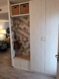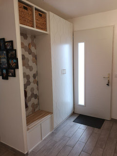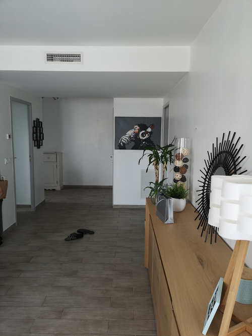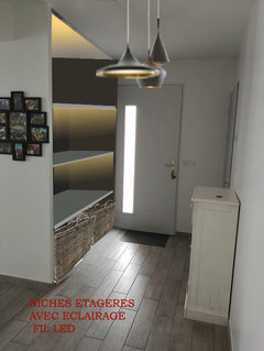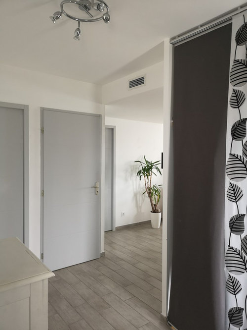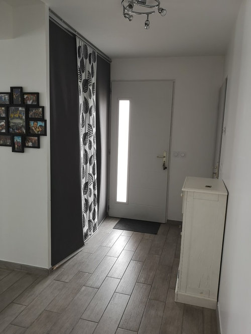 Commentaires (17)Bonjour, La seule chose d'après moi qui ne va pas entre votre entrée et le restant de l'espace de vie est que ca fait "fouili". Clairement on sent que vous êtes ennuyé avec cet espace. Je ne sais pas à quoi ressemble votre extérieur, mais pourquoi ne pas déplacer le problème de l'entrée hors de la maison. exemple sas d'entrée Je pense notament à un sas d'entrée, comme une mini véranda, avec soubassements (pour des meubles à chaussures) et un pan plein (pas en verre) pour mettre une penderie. Les meubles ainsi intégrés peuvent être très discrets. De ce fait, plus de chaussure, manteau, etc dont vous ne savez pas quoi faire et l'entrée actuelle, plutot que cloisonnée, séparée et bien marquée fait simplement le lien entre l'extérieur et l'intérieur et s'accorde mieux avec votre intérieur... Voir plusVotre avis sur mon plan de maison
