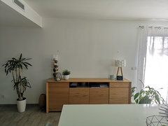 Commentaires (9)Bonjour Romuald Je comprends d autant mieux votre problème que j'ai longtemps habité dans une maison qui ressemble. si je puis me permettre d exprimer un problème que vous n'avez pas cité: en fait tout le coté entrée cuisine passage vers les chambres au fond c est un long ''couloir'' dans le séjour qui doit rester libre pour le passage. Du coup comment faire pour que et visuellement et à l usage on garde le sentument dun séjour large de 4m . Suggestions en vrac: Dans la configuration actuelle en mettant un tapis sous les elements du salon vous délimitez bien le salon de l entrée. Le claustra c est possible sur un mètre à l entrée qui délimite du coup l espace. J aurais alors bien vu la salle à manger avec la table en longueur derrière le claustra et après. Avec une suspension longue au dessus de la table, vous posez bien l espace salle à manger. Le salon vient ensuite et prend lui un espace plus '' carré. Selon le nombre de personnes à la maison vous pouvez vous permettre de charger plus ou moins le mur de droite. Plus c est chargé moins le passage vers le fond est aisé. J espère que ça peut vous faire avancer dans la reflexion !... Voir plus- il y a 7 ans