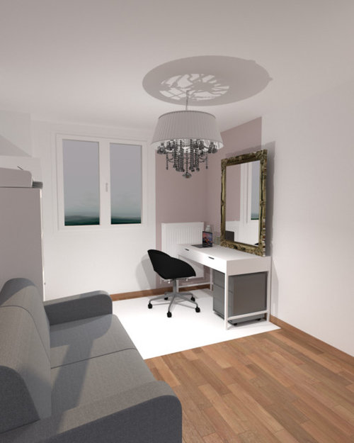 Merci beaucoup Home by Yolaine pour vos conseils ! Je n’avais effectivement pas pensé au risque pour le miroir de tomber ! Je vais essayer de le fixer dans la partie blanche du coup. Pour ce qui est du bureau c’est une bonne idée, merci ! En revanche, c’est mes 3D qui donnent cette impression de hauteur car mes plafonds sont légèrement plus bas que la moyenne ...