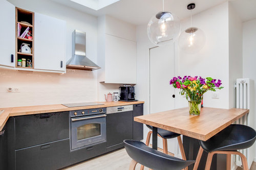 Commentaires (4)Bonjour, C'est une cuisine complète IKEA, avec les façades en placage chêne ( ekestad ) et blanc mat ( veddinge ) . En arrière plan, les verticalités ont été accentuées par des panneaux de finition de couleur taupe ( ubalt ). Le plan de travail est un stratifié blanc... Voir plusAvant/Après Transformation & modernisation d'un rez-de-chaussée à Lyon