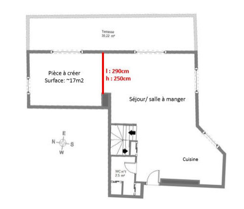 Commentaires (3)Bonjour Pauline, Voici quelques photos. Nous allons sans doute acheter un nouveau canapé, car le nôtre est bien vieillissant. Côté salle à manger, nous allons avoir une grande table en bois 2,50 par 80. Côté cuisine, nous projetons d'installer une cuisine en L avec un ilot central. Le sol sera en béton ciré blanc et les fenêtres en bois.... Voir plus- il y a 5 ans