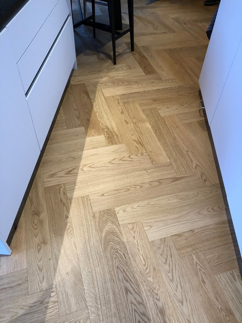 Je vous remercie pour ces photos. Par contre, en regardant de plus près, le parquet est quand même foncé par rapport à l'échantillon que j'ai vu en magasin. Vous me confirmez que c'est bien la Gamme "Cabbani Corn Rustic Mix Huilé ? Ou bien est-ce la luminosité assez faible des photos qui donne cette impression de teinte assez soutenue ?