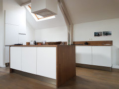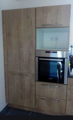Commentaires (7)Bonjour Ann-C, La cloison en question a été prévue, je suppose, pour cacher le réfrigérateur, ce dernier se trouvant à la place actuelle de la cuisinière au tout début du projet. En effet, apercevoir le la profondeur d'un frigo n'est pas des plus décoratif. Le promoteur a ensuite décidé d'inverser l’emplacement du frigo et de la cuisinière sans doute en raison de contraintes techniques. Cette modification pourrait donc permettre de ne pas avoir de cloison donc vu du salon sur la cuisinière par prolongation jusqu'à l'intersection (ceci dit, on verrait le profil de la hotte) et ainsi d'avoir coté allège (entre allège et radiateur) un plan de travail/coin repas. Ainsi, j'ai 1m en circulation intérieur, du rangement/espace de travail supplémentaire. Mais effectivement, comme le souligne Emilie Melin, cela mange l'espace. Votre idée de L est effectivement la meilleure idée, il me semble, pour conserver l'espace mais comme je le disais, je recherche du rangement et du plan de travail pour y mettre tout mon petit matériel et vaisselle car la cuisine...c'est très très important pour moi. S'il y a un plan coté allège, j'ai alors pensé à laisser la TV à l'emplacement prévu par le promoteur et mettre un canapé 3 place le long du mur donnant sur la chambre 2. De cette manière, on laisse l'espace ouvert. J'aurai aimé mettre un canapé d'angle mais ce sera pour un autre projet vu la contrainte ;-) Je suis tout à fait ouverte à tout proposition.... Voir plusBesoin d'aide pour installer une cuisine et salle à manger