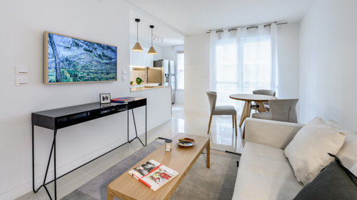 Commentaires (18)tellement plus lumineux et désormais traversant, la clé d'une transformation réussie ! certaines circulation en cuisine et salle de bain semblent bien étroites cependant ... peut-être un effet de perspecctive de la photo ? Gros chantier dans tous les cas !... Voir plusAvant/Après: métamorphose d'un salon/entrée