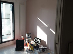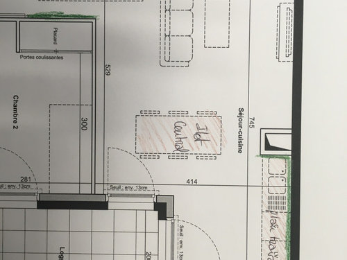 Commentaires (8)auriez-vous un plan même sommaire avec quelques cotes? La première impression est celle d'un espace assez encombré et très multifonction (repas, salon TV, repassage, buanderie!) nécessitant des meubles de rangement fermés et unifiés afin de dissimuler un peu tout le petit bazar inévitable du quotidien! En premier lieu (mais je n'ai pas les dimensions des murs ainsi que du canapé), je tenterai peut être de mettre le canapé contre le mur qui fait face aux fenêtres plutôt qu'au centre de la pièce car cela réduit considérablement l'espace et complique la circulation notement autour de la table: voyez si vous pouvez dans ce cas mettre TV et meuble TV entre les deux fenêtres...... Voir plusPeinture d'un mur salon/cuisine ouverte