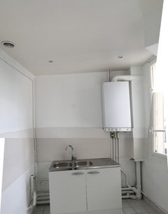 Commentaires (3)La prise TV n'est pas vraiment un souci, il y a aujourd'hui des bidules électroniques pour faire fonctionner une télé n'importe où dans la pièce. Ceci étant dit, j'aurais tendance à effectivement placer le canapé contre le mur de gauche parce qu'il y a plus de place. Sur le mur de droite, vous seriez gêné par le radiateur (j'imagine que c'est ça, les petits carreaux bleus). A vérifier, mais j'ai l'impression que vous devriez pouvoir mettre un canapé avec méridienne voire un canapé d'angle. La partie "courte" du canapé ferait la séparation visuelle avec la partie cuisine/salle à manger. Alternativement un canapé droit sur le mur de gauche et deux fauteuils, si vous préférez quelque chose qui ait moins d'impact visuel. Le canapé serait à rapprocher autant que possible du mur de la baie vitrée. Sur le mur de droite, en fonction de vos besoins vous pourriez mettre un meuble TV/rangement qui engloberait le radiateur. En revanche ça impliquerait probablement du sur-mesure. Si ce n'est pas possible, un meuble TV normal avec une armoire assortie qui se placerait à gauche du meuble (côté salle à manger) et des étagères au-dessus du radiateur serait une alternative. Ou alors si vous avez besoin d'un coin bureau, plutôt qu'une armoire à gauche du meuble TV, un bureau voire une combinaison meuble TV/bureau. https://s-media-cache-ak0.pinimg.com/originals/cd/57/8e/cd578e5ac7ebc8510b9a1761f02c4d02.jpg... Voir plusBesoin de conseils pour espace repas dans ma pièce de vie en longueur