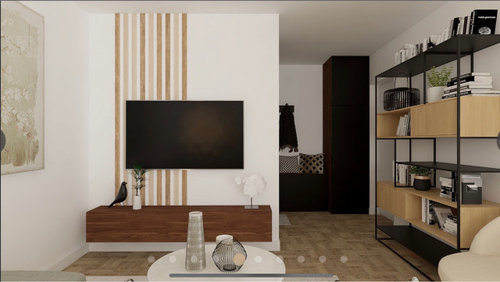 Commentaires (18)Merci pour vos conseils, je vais mettre plutôt en valeur mes deux murs (côté tv et escalier). En effet les meubles sont imposants et ils paraîtront moins imposants avec un mur blanc. Je cherche des papiers peints originaux pour le côté TV car c'est le premier mu que l'on voit en entrant dans la salle / salon. Pensez-vous qu'un papier peint original derrière le meuble tv (la tv sera accrochée au mur) et le reste uni (côté poêle) ne ferait pas bizarre ? Celui-ci avec un mur bleu uni : https://www.4murs.com/articles/1136928-intisse-stone-craft-coloris-gris-beton ou celui-ci : https://www.amazon.fr/HANMERO-Classique-Backdrop-Chambre-Gris-Argent%C3%A9/dp/B00YU6VVXA%3Fpsc%3D1%26SubscriptionId%3DAKIAJEZF7AJEOAHNTUVA%26tag%3Dlivingofr-21%26linkCode%3Dxm2%26camp%3D2025%26creative%3D165953%26creativeASIN%3DB00YU6VVXA... Voir plusDécoration murale salon/ salle à manger