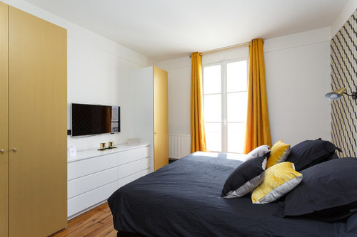 bonjour, quelle est la marque des rideaux jaunes dans la chambre svp ?Très belle réalisation: bravo
