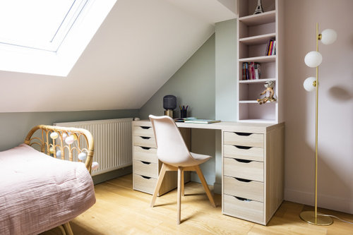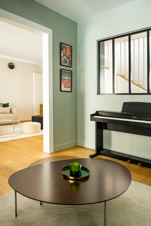 Commentaires (31)Bonjour, Comme beaucoup, je trouve que c'est une rénovation magnifique. Je suis paticulièrement sensible à l'atmosphère du bureau, avec ses couleurs... Par contre, je pense qu'utilisez des papiers peints pour les décors n'est pas à la hauteur qualitative du reste. Je sais je prêche pour ma paroisse mais c'est un réflexe que je retrouve trop souvent et qui me désole. Décors peints à la main, rien de mieux messieurs, dames !! Cordialement Art4in https://art4in.fr... Voir plusAvant / Après - Appartement familial contemporain à Denfert