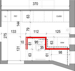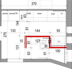 Commentaires (7)Re-bonjour Alexis, je pense que vous allez avoir besoin d'un îlot ... on compte pour avoir une cuisine petite mais confortable qu'il faut en linéaire au moins 5 ou 6 blocs de 60 (pour pouvoir caser tous les éléments) : frigo+plaques+évier+plan de travail et sachant que la plaque ne peut pas être collée à l'évier et qu'il vaut mieux ne pas avoir plaque/four à côté du frigo (pour des raisons évidentes). sur votre plan en l'état actuel vous avez 4x60, ce qui est définitivement insuffisant. l'îlot pourra recevoir les points d'eau (évier + lave-vaisselle + poubelles) ou les points de cuisson (plaques+four+hotte). en effet une cuisine en L n'est pas possible à moins de changer la porte de place. Bonne soirée, Catherine... Voir plusBesoin d'aide et de conseils pour l'aménagement de notre pièce de vie.