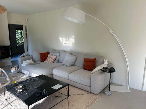 Commentaires (45)Bonjour, Le mot "choquant" est un peu fort, mais je vois l'arrêt qui se promène...et j'ai aussi vu l'arrondi...la seule manière de "gommer" je que je vois (mais pas nécessaire si l'arrêt ne vous dérange pas) est de rajouter une petite baguette ou moulures très fine, en dessous de l'arrêt, peint la couleur du plafond. Et concernant une suspension, éviter les ampoules nues. Ça marche mieux en éclairage d'appoint, avec une ampoule type Edison à basse puissance, mais pas en éclairage unique au centre d'une pièce. J'ai aussi l'impression que le DCL au plafond est justement décentré. d'où mes propositions de suspensions qui pouvaient être déportées par rapport à l'alimentation. Malheureusement c'est très difficile à prendre des éclairages à ampoule nue en photo. Il se peut que votre suspension rend mieux en vrai qu'en photo? Bonne journée, Lynn... Voir plusDéco Salon - couleur canapé?