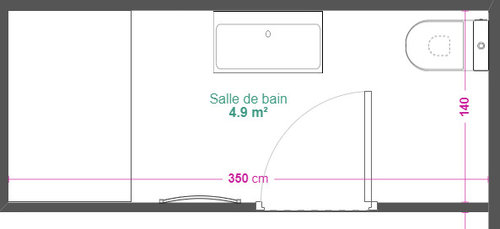 Commentaires (13)Bonjour Jeanne J, Je vote pour l'option 2. On l'a déjà fait, ça marche très bien et de tout façon, statistiquement la baignoire est nettement moins utilisée que la douche. et le wc - dans votre cas, il faut le tourner à 90° - une porte vers le wc et une porte vers la salle de bains si vous voulez plus d'intimité. Ceci étant dit, avez-vous besoin de 2 wc cote à cote? Autre suggestion, ne mettez pas 2 lavabos / mitigeurs. On est rarement entrain de brosser les dents au même temps. Tant qu'il y a un grand miroir afin que l'un se rase pendant que l'autre se coiffe, on mutualise les appareils et on passe moins de temps à les laver / entretenir. Dans notre cas, la salle de bains était dans la suite parentale. Voila ce que ça peut donner. Normalement avec 4m55, ca entre (baignoire 70cm, douche 90cm, lavabo 120cm, colonne 40cm, cloison 7cm, ca laisse 128 pour le wc) Les portes de 73cm ou bien 63cm pour un wc marchent très bien. Mais si c'était moi, je supprimerai le wc "en trop". bon courage, Lynn... Voir plus- l'année dernière