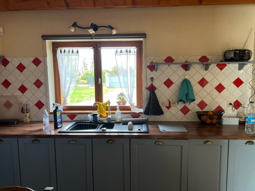 Voilà je souhaiterais rénover carrelage, carreaux rouges pas à mon goût. Sans faire de gros travaux, pourriez vous me dire quelle couleur pour remplacer ces carreaux rouges par rapport à la couleur des meubles de cuisine (peindre sur carrelage, adhésif, ou ?)