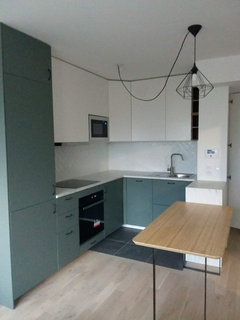 - une cuisine equipee avec lave linge et petit lave vaisselle, hotte