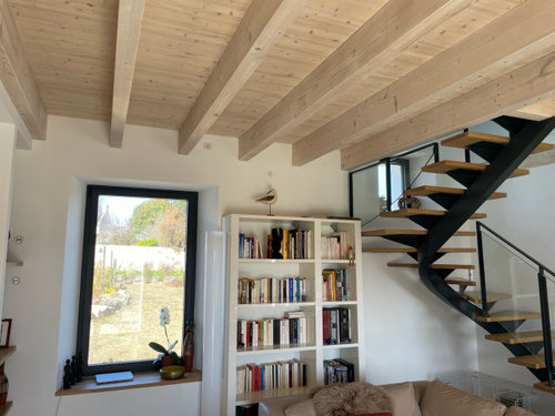 Commentaires (21)Merci Coco. C'est gentil, je ne suis pas une battante, j'adore ça ! Je viens de finir les peintures déco pour la maison neuve d'une de mes filles et avec son aide, mon autre fille est comme moi touche à tout et hormis quelques gros travaux où nous sommes allés l'aider, elle gère ses travaux et la déco quasiment toute seule avec beaucoup de réussite. Et enfin j'ai terminé (avec mon mari) en début d'année la réfection totale de la salle de bain d'un petit T1 bis à Toulouse, nous appartenant et que ma troisième fille occupe ! Il nous reste encore à refaire toute la kitchenette et la pose d'un parquet... ouf je n'ai que trois enfants ! Pour MA maison du Gers, je note bien toutes vos suggestions. En fait le tour du haut de la faïence en gris ferait comme une frise ? Alors que je voulais justement poser une frise mais un peu plus bas. A voir donc. Pour l’intérieur droit de la douche (le reste est transparent) je cherche, je cherche, peut-être un produit acide pour "ronger" cette application ? Quant au produit résinence, j'ai déjà pratiqué mais sur une table de cuisine il y a 8 ans, ça n'a pas bougé. Je tiens quand même à préciser que tous mes posts concernent DEUX maisons...la première où tout était à refaire ( et en cours) dans le bordelais, les posts SDB et SDE (et quelques uns sur la couleur des volets) eux sont dans le Gers. Voilà, voilà... Je me lance dans la révov des SDB en avril en principe, je ne manquerai pas de poster des photos. Merci en tout cas pour vos conseils. je sais que beaucoup de houzzers n'aiment pas beaucoup les rénovations un peu cheap mais je n'ai pas le choix, je ne suis pas crésus :D :D :D. L'idéal étant toujours de tout casser et tout refaire mais je n'ai pas le budget. Je me contente de beaucoup réfléchir avant, de travailler avec des matériaux milieu de gamme et d'être nickel au niveau de la mise en œuvre, ça prend du temps mais c'est impeccable.... Voir plusquestion paysagiste , comment remplacer ce houx