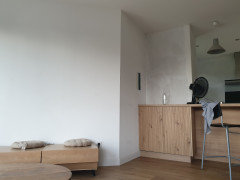 BonjourVoici un bout de mur entre mon salon et la cuisine (îlot)J'aimerais avoir vos idées pour amenager ce coin mortEtagere ? Si oui quelles matières car tout est aspect bois déjà et je crains de surchargerCouleur ?Merci pour vos bonnes idées