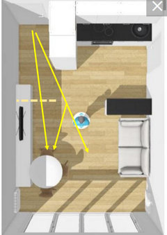 Commentaires (12)Bonsoir Manon, Très bel espace de 30 m2 avec une longueur remarquable de quasiment 8m2 qu'il faut valoriser et exploiter ... Pour jouer de cette longueur on peut imaginer privilégier des solutions d'aménagements avec - pour la partie TV un écran ultra plat placé comme un tableau ( image 6: écran frame samsung ..) avec une fine tablette ( image 3 ) pour vos équipements multimédia ou autre au dessous , - Un très long tapis qui souligne la grandeur du SEJOUR ( dessin 1 ) et recevrait peut être la partie repas ( dessin 2 ) - pour la partie ENTREE la création d'un espace transitoire entre la partie "séjour" et l'espace "fonctionnel" de l'entrée. Vous pouvez imaginer un meuble même très étroit avec une partie sol plafond pour assurer sa stabilité et le reste très ouvert comme un bar, une bibliothèque basse avec des niches et du coté entrée et du coté salon... Dans notre projet "CESAR" nous avons dessiné ce type de mobilier sur mesure, ce qui a permit à notre cliente de ranger ses sacs à main et faire office de vide poche ... Dans la première partie j'y symbolise des portes manteaux et effectivement j'ai remis la porte dans le bons sens ... Thomas... Voir plusIdee amenagement cuisine et salon