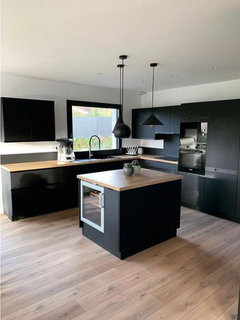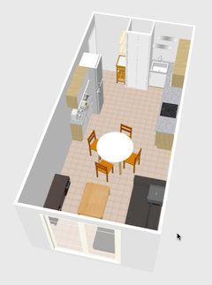 Commentaires (11)bonjour, merci beaucoup pour vos réponses. C'est vrai qu'un plan de travail clair en bois voir blanc pourrai rendre bien vous avez raison so dko. Par contre pour la plaque je ne veux pas la mettre à coté du frigo car je trouve que ce n'est pas logique et j'aimerais avoir du plan de travail a coté sinon ce n'est pas du tout pratique je serais bloquée entre le coin du mur et le frigo. Et je ne vois pas ou la mettre à coté de l'évier ça me parait bizarre. J'aimerais avoir le plus de rangements possible aussi dont une colonne. Cuisishop, au sujet de l'ilot votre idée serait de le mettre à la place du plan de travail avec la plaque de cuisson? parce que si c'est le cas j'ai l'impression de perdre des rangements car il y a un meuble d'angle dans le coin a cote de la plaque puis le four puis un casserolier. Autre doute c'est est ce que j'aurais ensuite la place de mettre ma table à coté à droite car les ilots sont en general assez larges. Ensuite j'ai conscience que notre retour de bar n'est pas idéal mais comme précisé precedent il passe au dessus de la moitié du casserolier pour respecter un espace de passage le mur d'en face etant assez prohe du coup on ne peut pas mettre de meuble bas comme sur votre plan je pense? (le retour bar de notre plan de fait que 40cm et ne dépasse pas d'autant ) Je ne vois vraiment pas comment mieux aménager cet espace en essayant d'avoir pas mal de rangement et plan de travail tout en ne prenant pas trop sur le salon c'est un vrai casse tête! Pour ce qui est de la couleur on sait que la pièce est lumineuse et on aime vraiment cette couleur ce n'est pas parce que c'est tendance c'est parce qu'on aime le bleu comme ça et on avait envie de couleur comme tous les murs sont blanc tous nos meubles sont gris on allait retomber sinon dans une cuisine blanche ou grise on voulait apporter la touche de couleur avec des rappels bleus dans le salon. Mais peut être que prendre une cuisine blanche avec un mur bleu canard peut être pas mal aussi merci pour votre aide bonne soiree... Voir plusRenovation cuisine (et appartement entier)