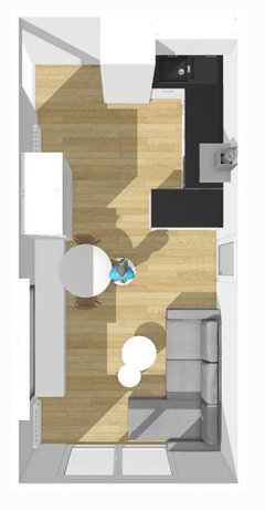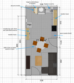 Commentaires (27)Bonsoir et merci pour ces remarques, Caroline, et Julie. Pour le placard derrière la porte... hélas je ne peux pas vous en dire quand chose : je ne l'ai pas vu durant la visite de l'appartement avant le confinement, car je n'ai pas regardé derrière la porte, mais je l'ai découvert dans un plan, ici : Il est peut-être un peu plus profond que ce que j'ai dessiné. Je suis d'accord avec vous, Julie, c'est probablement mieux d'éviter les angles, et de prolonger le plan de travail jusqu'au mur de la porte, qu'on peu déplacer. Vous avez raison, c'est mieux de rassembler l'eau dans le même coin, où l'eau arrive. Je n'y avais pas pensé auparavant. Décidément cet échange est très intéressant pour moi. Caroline, merci aussi. Pour la cloison à remplacer par une verrière, c'est une solution qui apporterait de la lumière dans la cuisine et aussi une sensation d'espace, mais je ne suis pas certain que j'aie envie de voir la cuisine en entrant. Je fais cependant creuser l'idée d'une "belle verrière en bois mouluré" (je dois dire que ces verrières pseudo industrielles noires que l'on voit partout me donnent un peu l'urticaire !). Pour l'instant j'habite dans une espèce de loft sans beaucoup de séparation, et je rêve d'espaces qui se ferment désormais :-) C'est aussi la raison pour laquelle j'ai renoncé à supprimer la cloison entre salon et salle à manger, j'aime l'idée d'avoir à circuler de pièce en pièce. Comme je n'ai pas de chambre d'ami, le salon peut aussi être fermé pour l'invité sans que je le dérange le matin en allant dans la cuisine.... Voir pluscoin cuisine appartement a la montagne