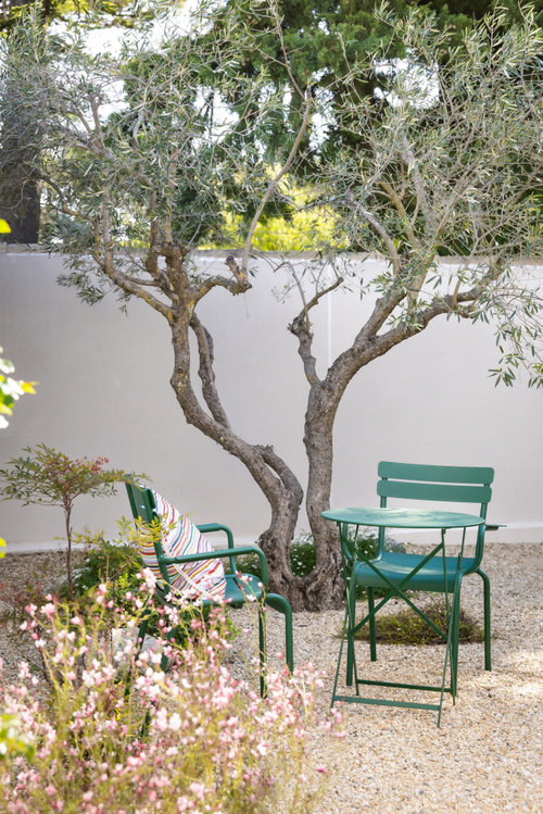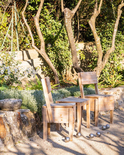 Espaces gravillonnés → parfaits pour disposer quelques fauteuils ou un banc, créer une halte contemplative… ou partager une partie de pétanque entre amis.